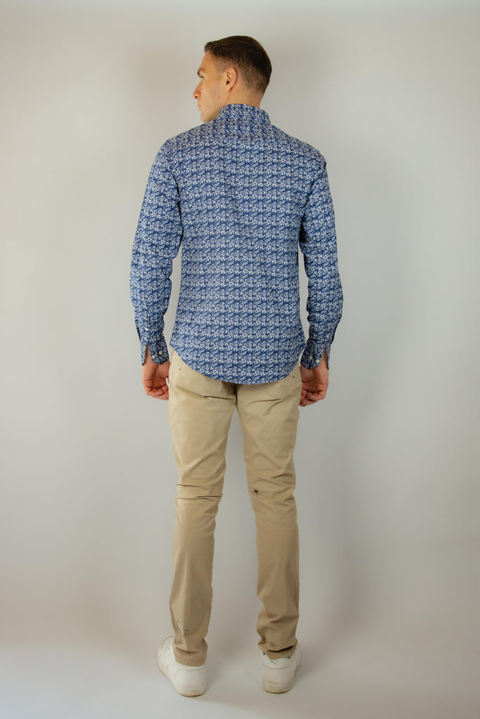 Camicia in cotone blu con fantasia floreale