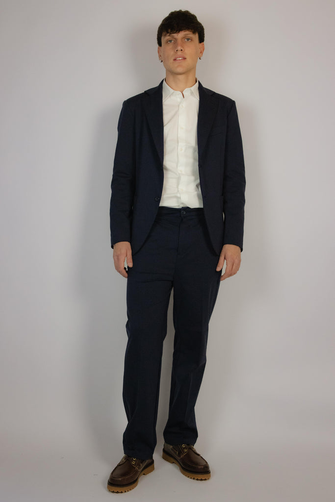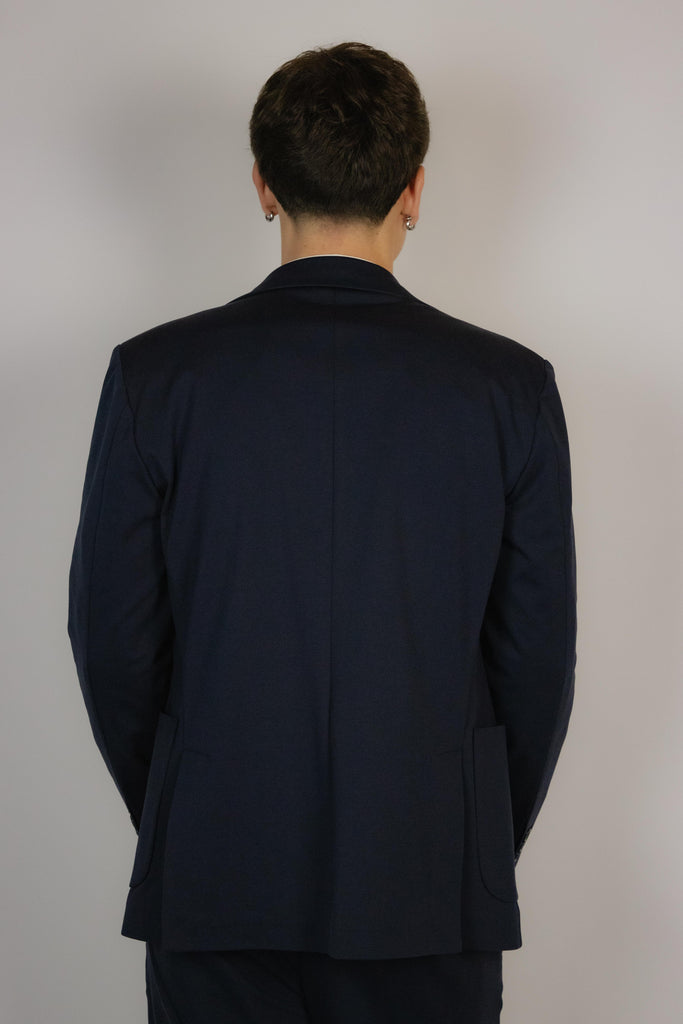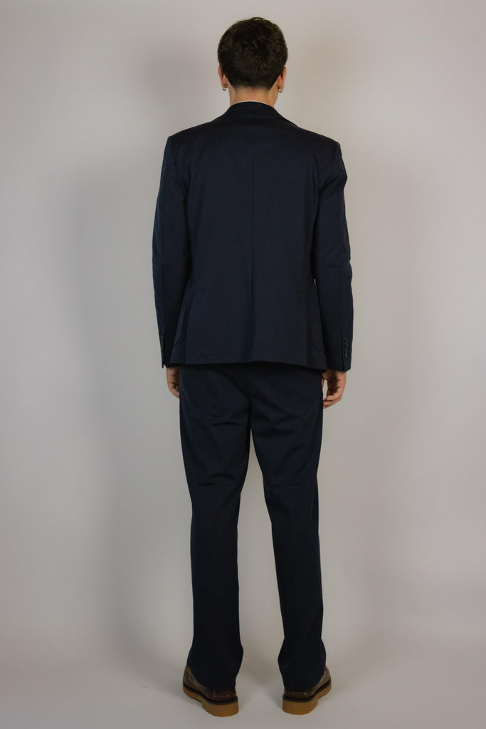 Jacket with lapels in blue Milano stitch. The two tone-on-tone buttons and the maxi pockets on the front enrich the jacket with personality together with the fake welt pocket on the heart side. The four buttons on the sleeve, the two slits on the back and the internal pocket add further style details to this blazer. The stretch cotton also guarantees excellent fit and comfort.
