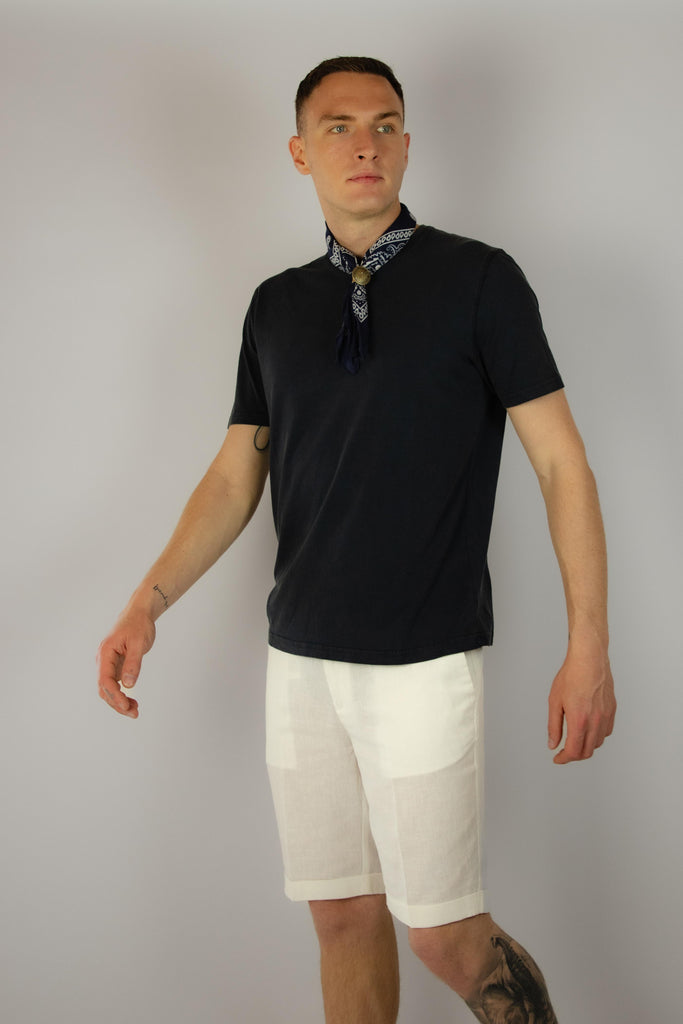 Consigli di stile: indossa la t-shirt con i bermuda in lino per un outfit estivo e aggiungi una bandana per un tocco di stile, altrimenti abbinala sotto un blazer chiaro e un light denim per un look più casual.