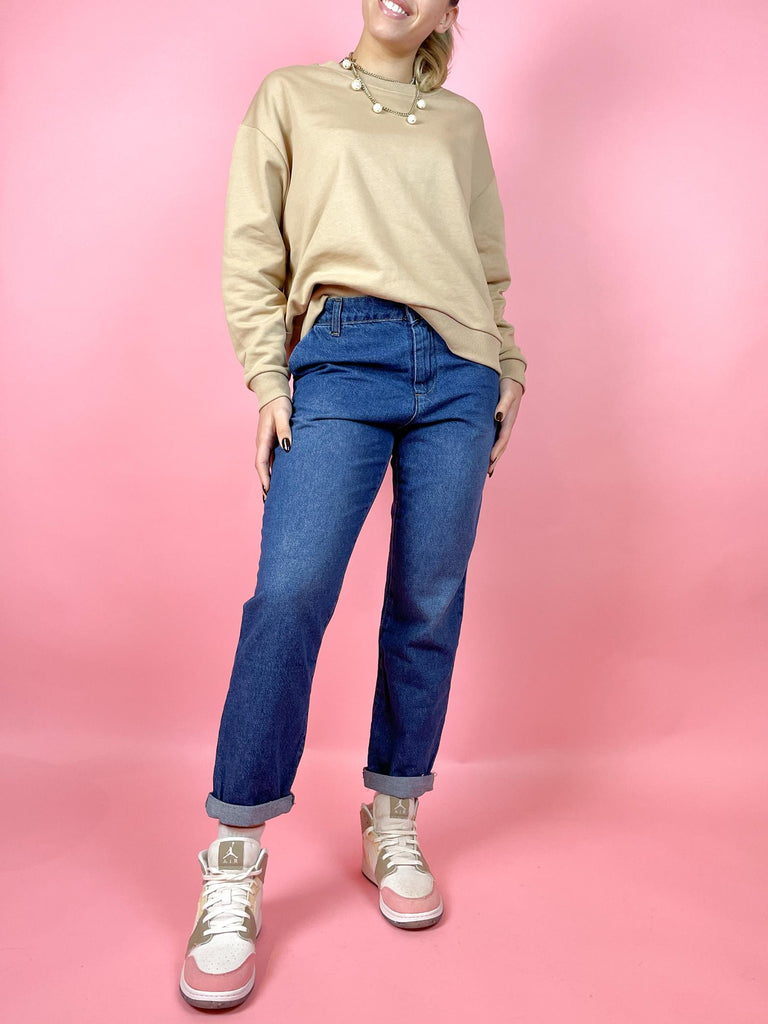 Felpa garzata paricollo color beige - biscotto del brand Lay Back.